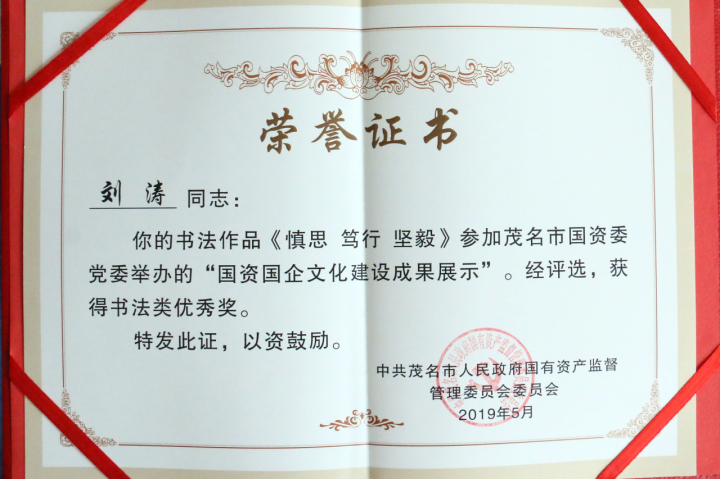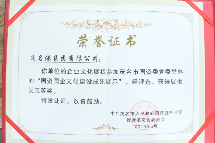 5月24日,茂名市第二屆國資國企文化建設(shè)成果展示頒獎儀式在市城投集團(tuán)展廳召開。其中茂名港集團(tuán)精神文化內(nèi)涵展板榮獲三等獎,書法作品《慎思 篤行 堅毅》榮獲優(yōu)秀獎。