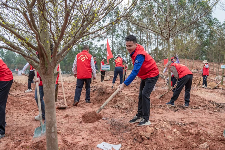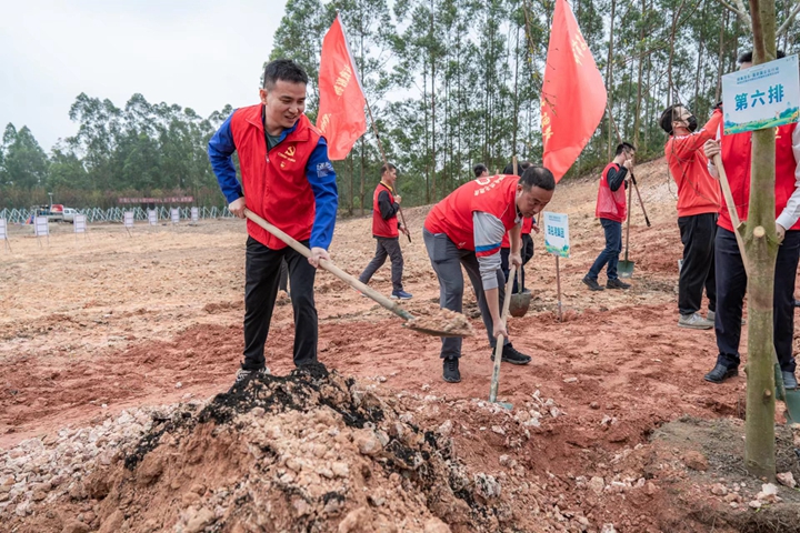 黨員志愿者們懷著滿腔熱情,早早到達了活動現(xiàn)場。大家迅速集結,活力充沛、意氣風發(fā),展現(xiàn)出茂名港人特有的精神風采。在觀看完省國資委黨委書記、主任余鋼等領導致辭,以及“綠美廣東·國資國企在行動啟動”主會場視頻直播之后,市國資委黨委書記、主任梁劍輝致辭并宣布植樹活動正式開始,集團黨員志愿者干勁十足、躍躍欲試,扛起鐵鍬和鋤頭,大步大步向前走,展現(xiàn)出了強烈的參與意愿和行動力。